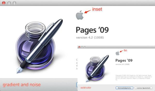 Fun! Spot the subtle differences between the Retina and non-Retina versions of the Pages, Numbers, Keynote About boxes.