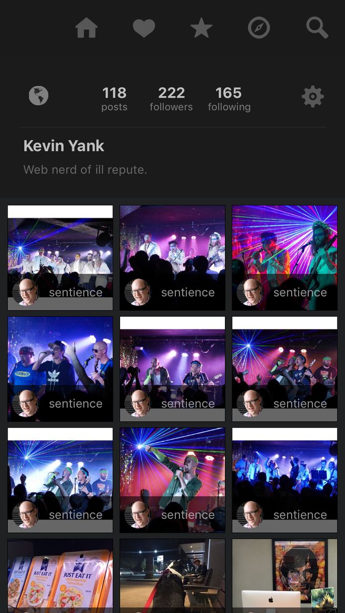 This looks broken (iPhone 6s, iOS 9.0.2). No icon at top-left, but tapping there does show my photos.