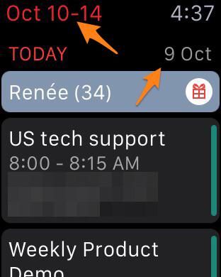 Another Watch app issue: today is October 10th, not the 9th. Wrong label and the events should be dimmed.